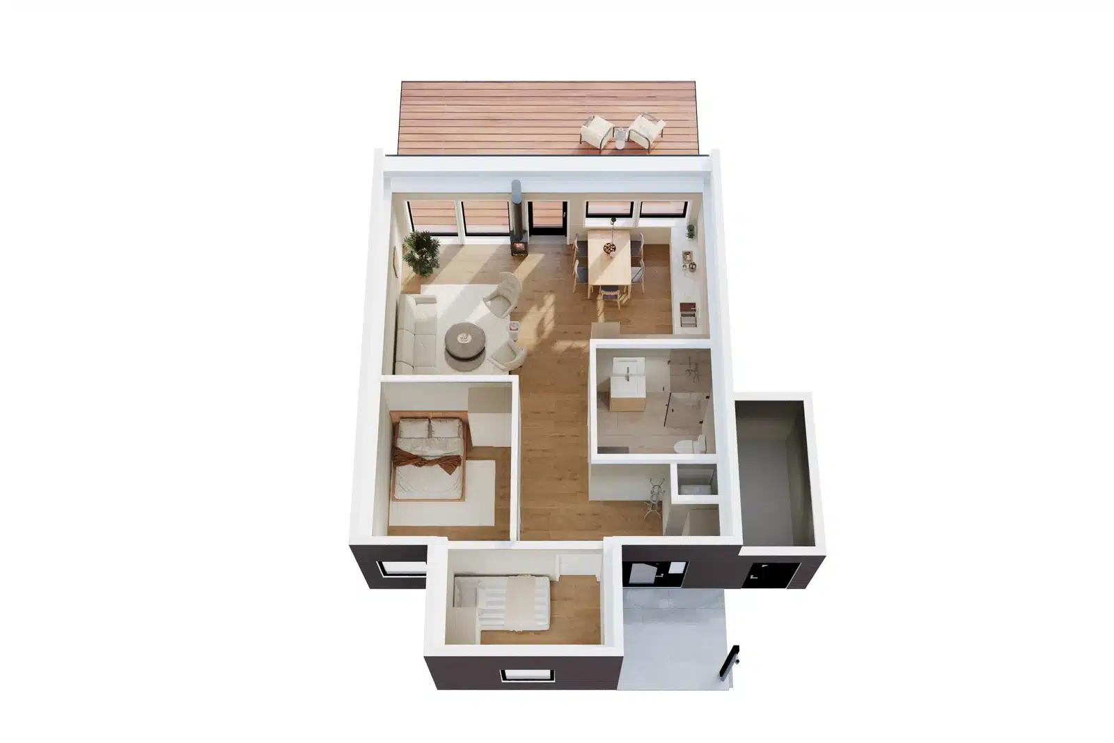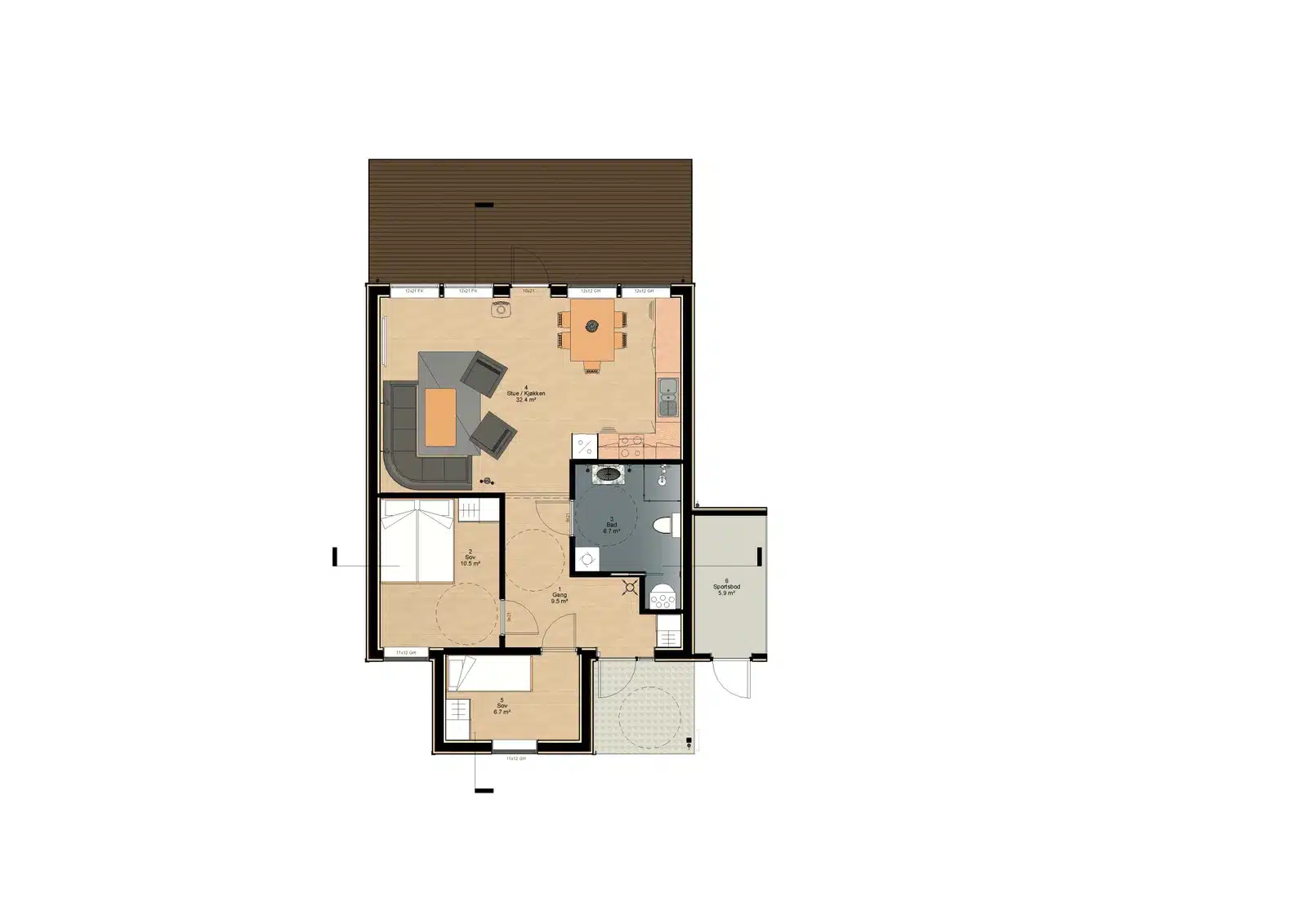 Hver leilighet vil være på 74 m² og inneholde romslig stue, moderne kjøkken, stilrent bad, 2 soverom og sportsbod. Leilighetene leveres med både gulvvarme og vedovn for oppvarming.